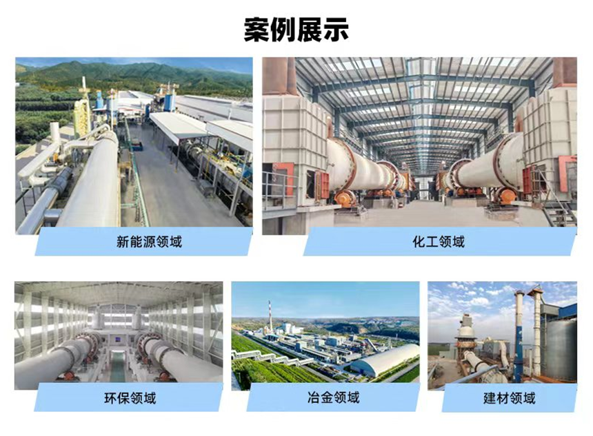 化工领域:磷矿、次氧化锌、碳酸锶、硫化钡、钛白粉、微硅粉等材料的煅烧与生产系统;